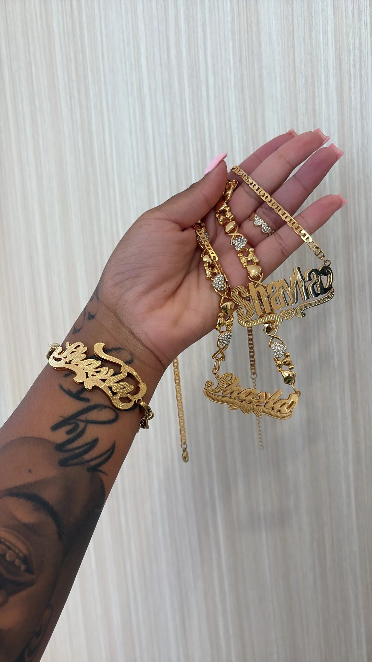 Make it yours! Our custom teddy bear nameplate necklace lets you wear your name (or someone special’s) with style. Crafted in high-quality sterling silver, plated in your choice of gold personalized with your name and accented with teddy bears and hearts this necklace is the perfect everyday accessory with a playful, personalized twist.